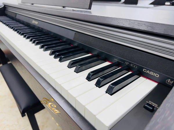 Piano điện Casio AP400 chính hãng từ Nhật Bản, có 88 phím mô phỏng theo dạng phím piano acoustic, giá thành rẻ phù hợp việc học đàn, luyện ngón tại nhà, học tập chuyên nghiệp.